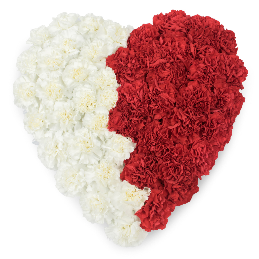 Celebrate special moments with our exclusive heart-shaped mixed carnations arrangement by Handy Flowers. This captivating bouquet features a blend of white and red carnations, symbolizing purity and love, meticulously arranged for a stunning visual appeal.